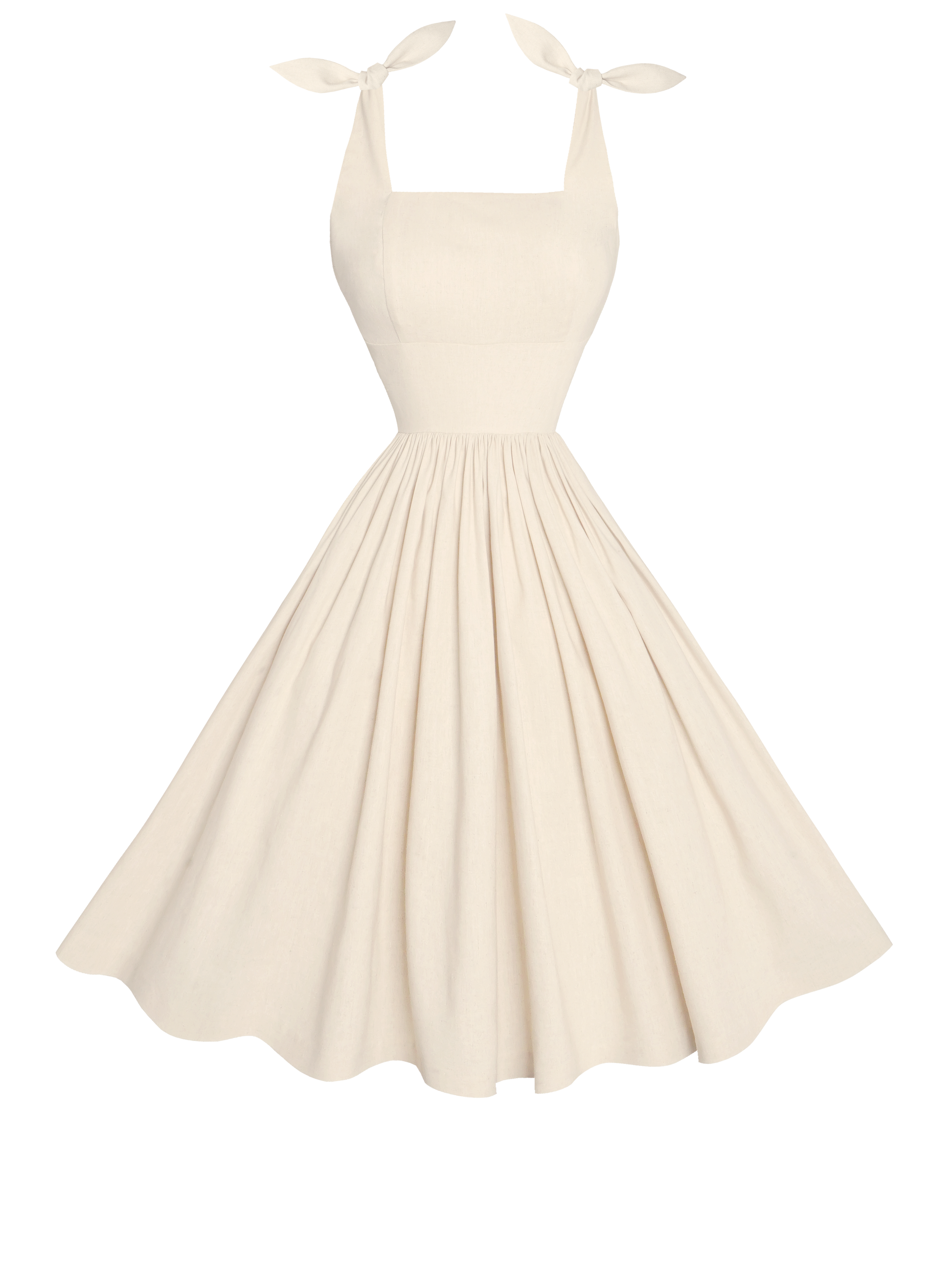 A delightful 1950s style Sundress that captures the essence of a vintage Hawaiian vacation. As usual, our dresses are expertly tailored to create a timeless silhouette with details of a square cut neckline, a shelf bust and shoulder tie straps that are fully adjustable. In addition to our hidden pockets that keep your essentials close at hand (phone, sunscreen, maybe a stolen glance at a handsome cabana boy?) Fitted bodice with a nipped in waist and a full gathered skirt.