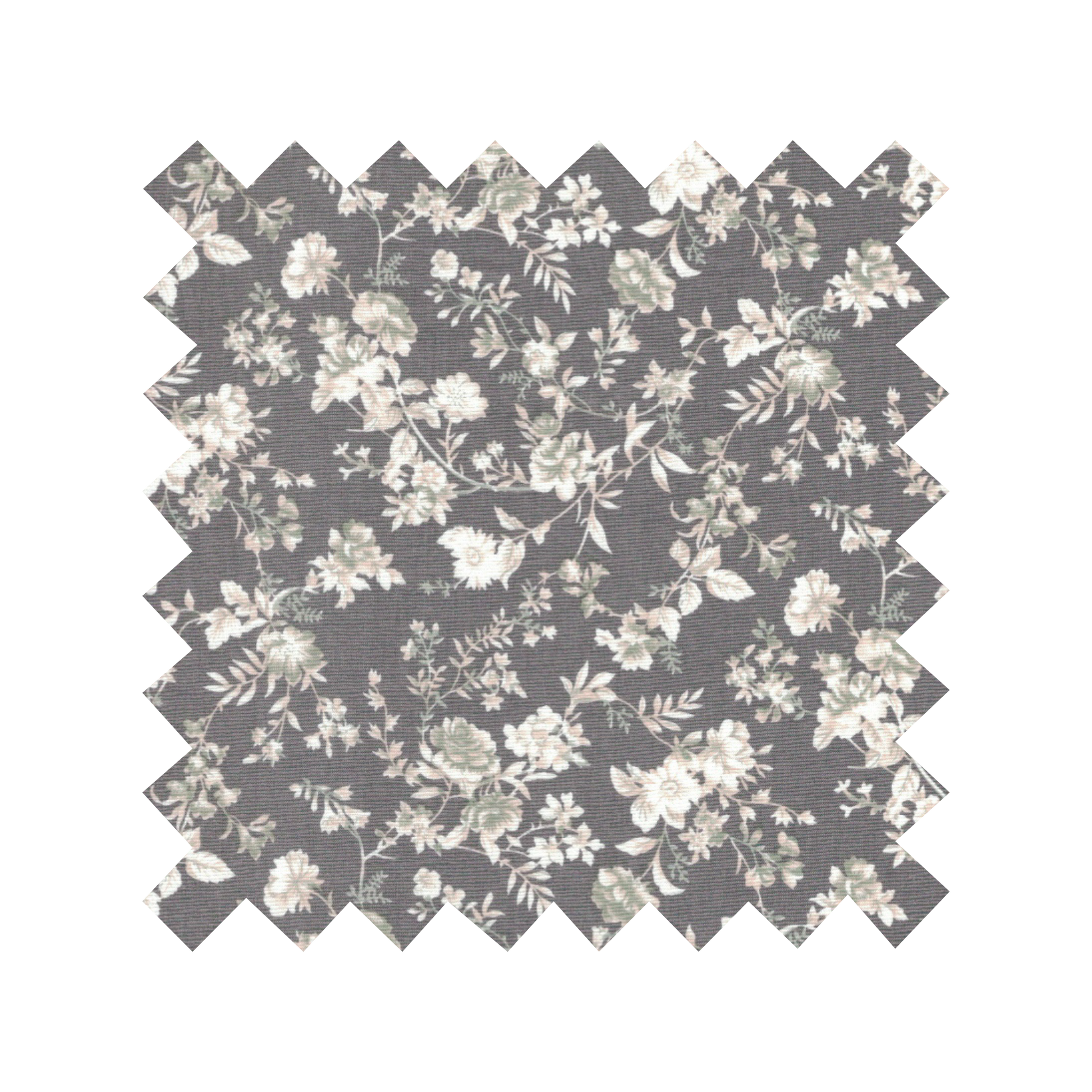 - Delicate toile-inspired print featuring tiny white florals on a soft grey background