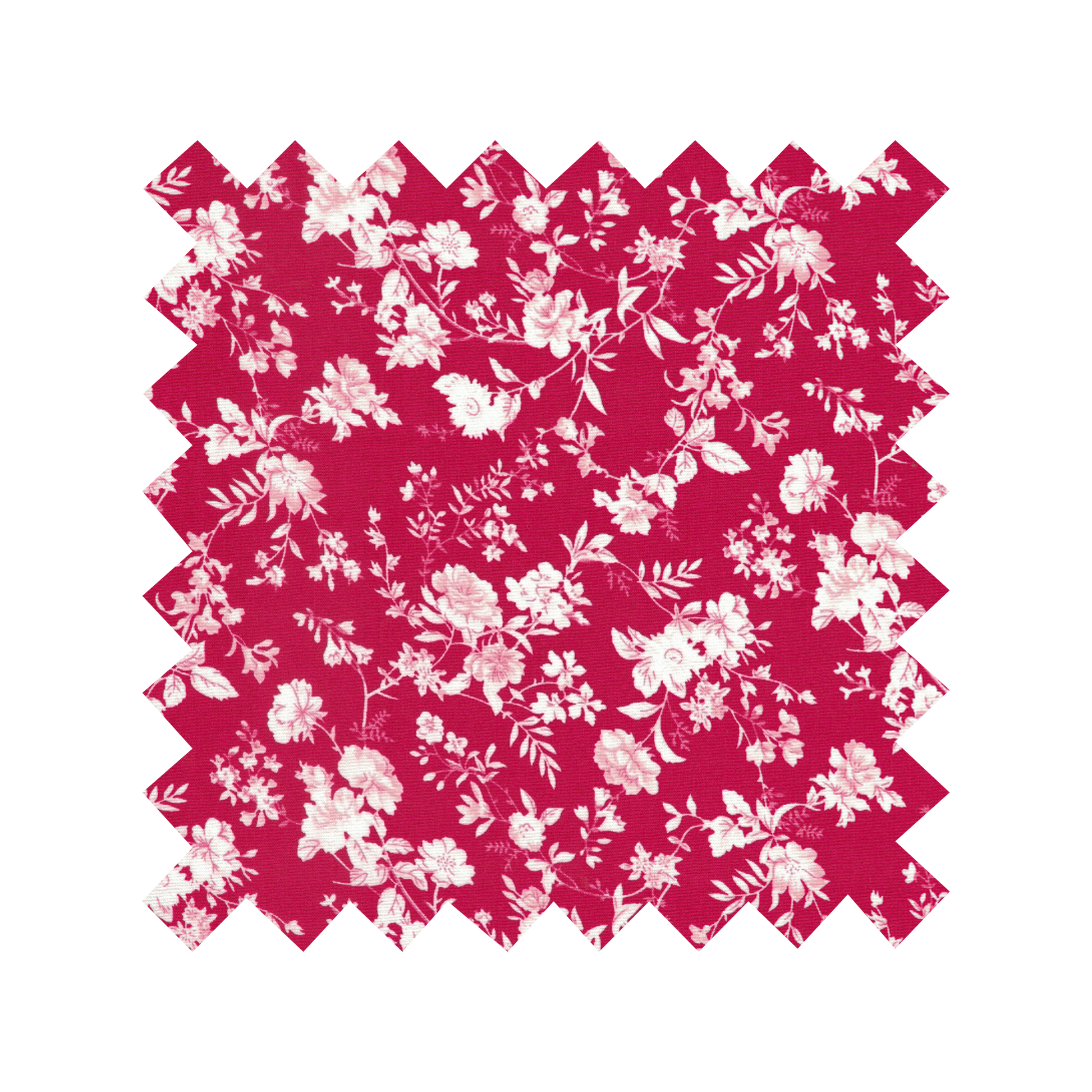- Delicate toile-inspired print featuring tiny white florals on a soft red background