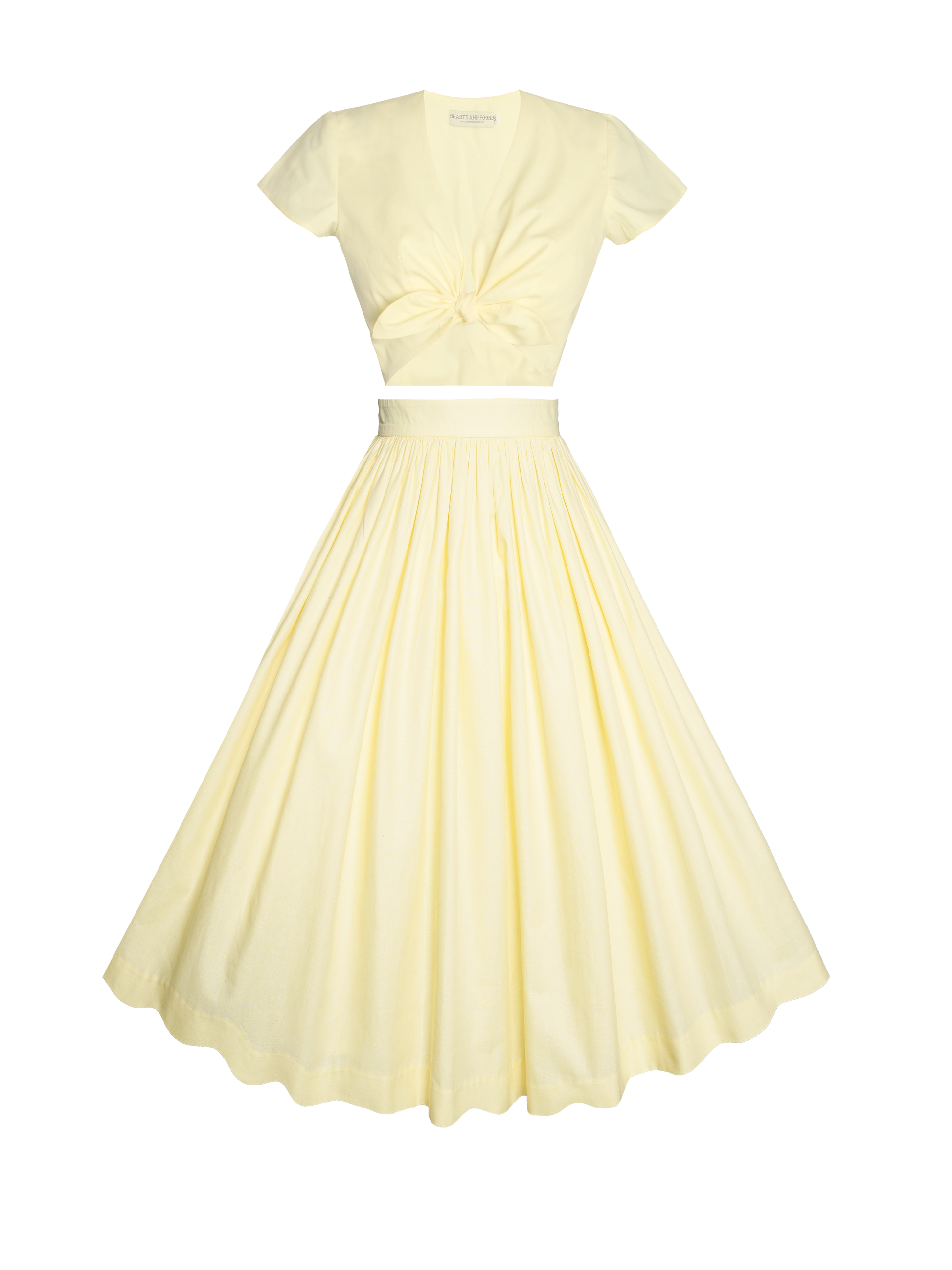 This flirty tie-front top is perfect for picnics, beach days, and all your warm-weather adventures. It pairs perfectly with high-waisted denim shorts or a flowy circle skirt. - Tie front midriff top - Wrap Neckline - Short Cap Sleeves - Fully Lined Lola Skirt: Our most classic, 50’s inspired gathered skirt that will flatter your figure and the soft, fully lined cotton construction will ensure all-day comfort. Hidden pockets keep your essentials close at hand (phone, lipstick, maybe a love letter?)