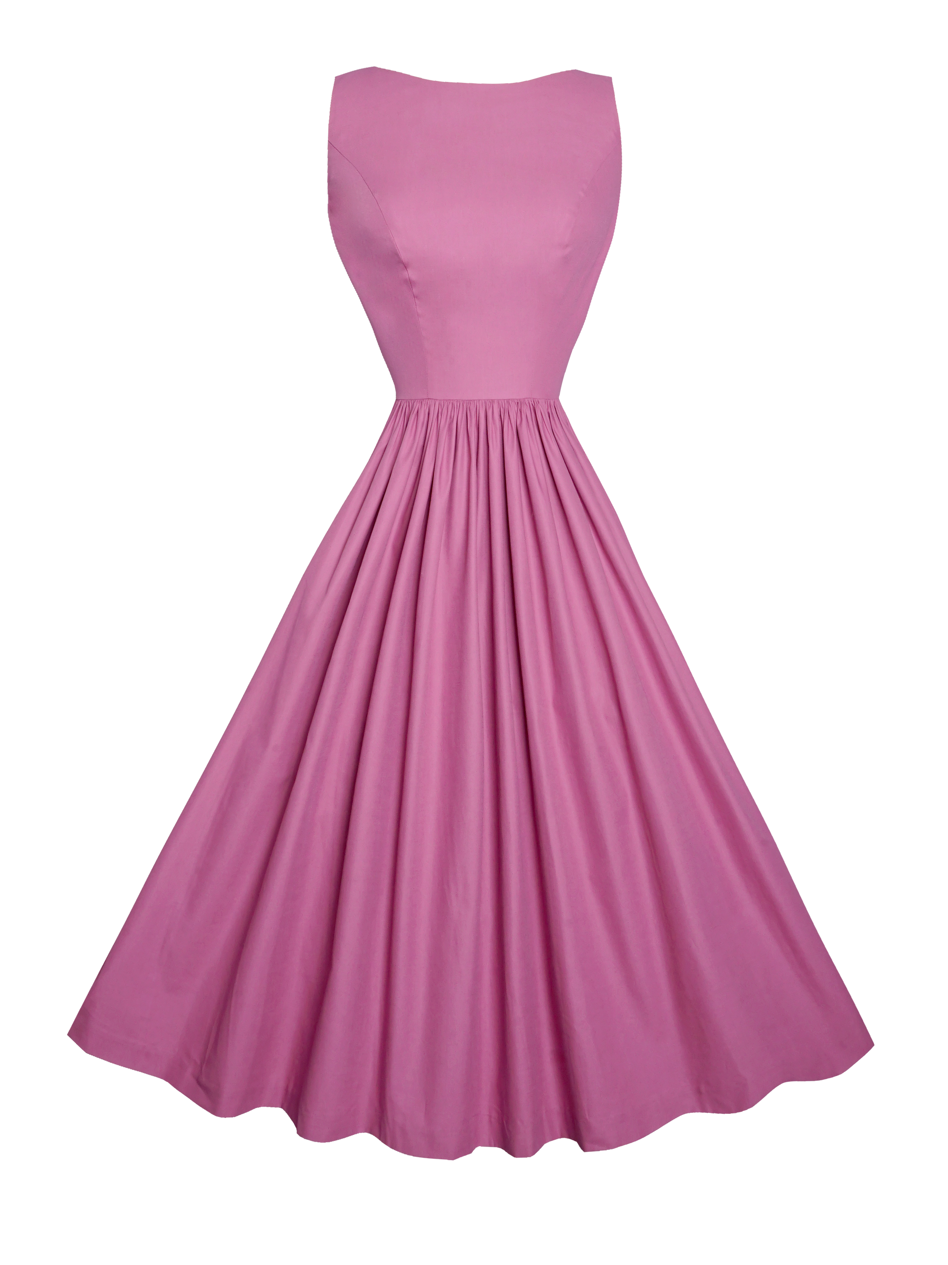 This timeless 1950s dress was inspired by the ever so elegant Audrey Hepburn. Made form-fitting and with a high boatneck and sleeveless detail. Expertly crafted for a flattering fit-and-flare silhouette, it's perfect for both daytime affairs and evening soirees, leaving you feeling poised and refined.