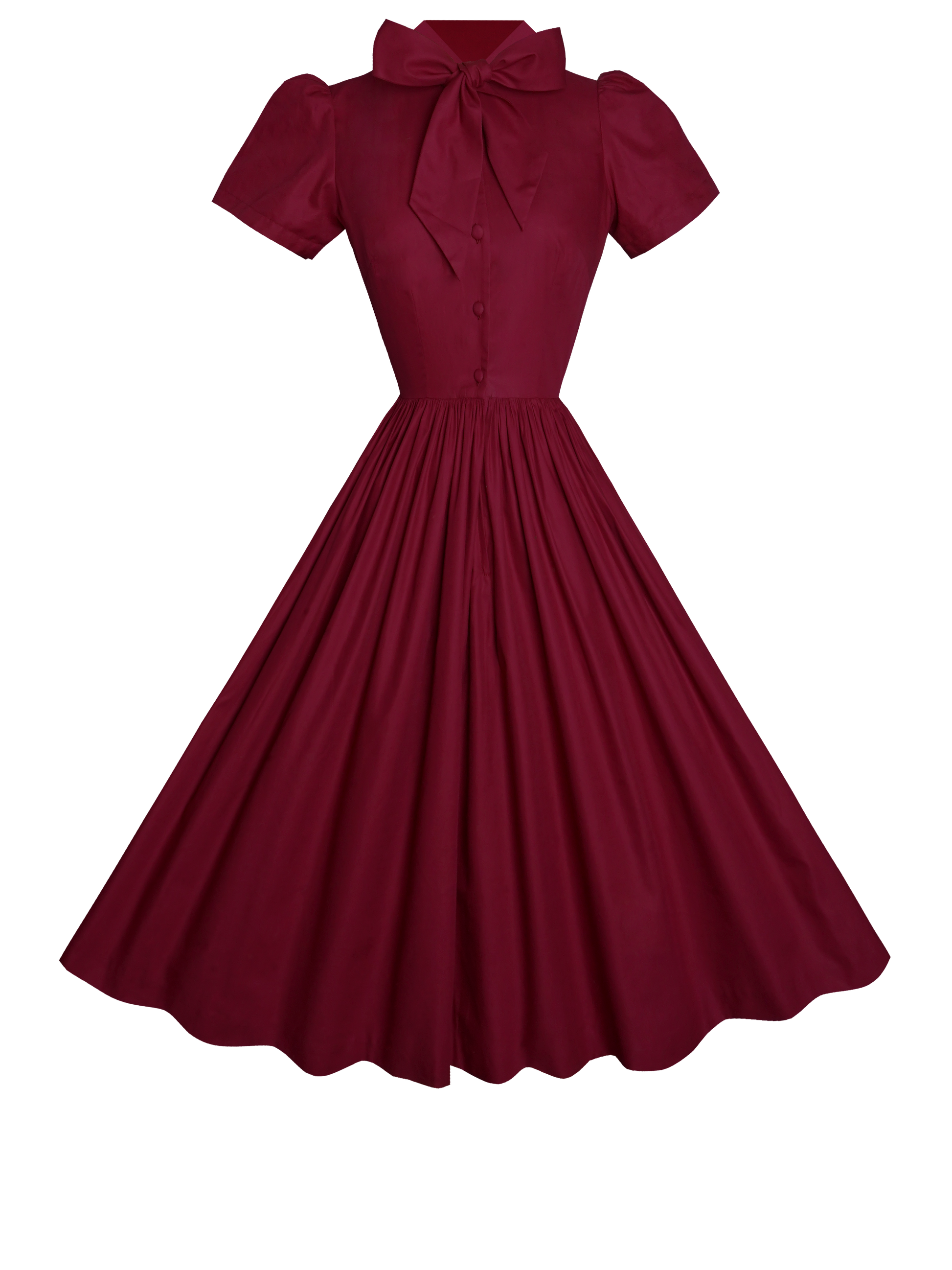 The Bonnie Dress combines an adorable collared neck tie and puffed cap sleeves. Its full gathered skirt and nipped waist will flatter your figure, leaving you Hchic and comfortably put-together.