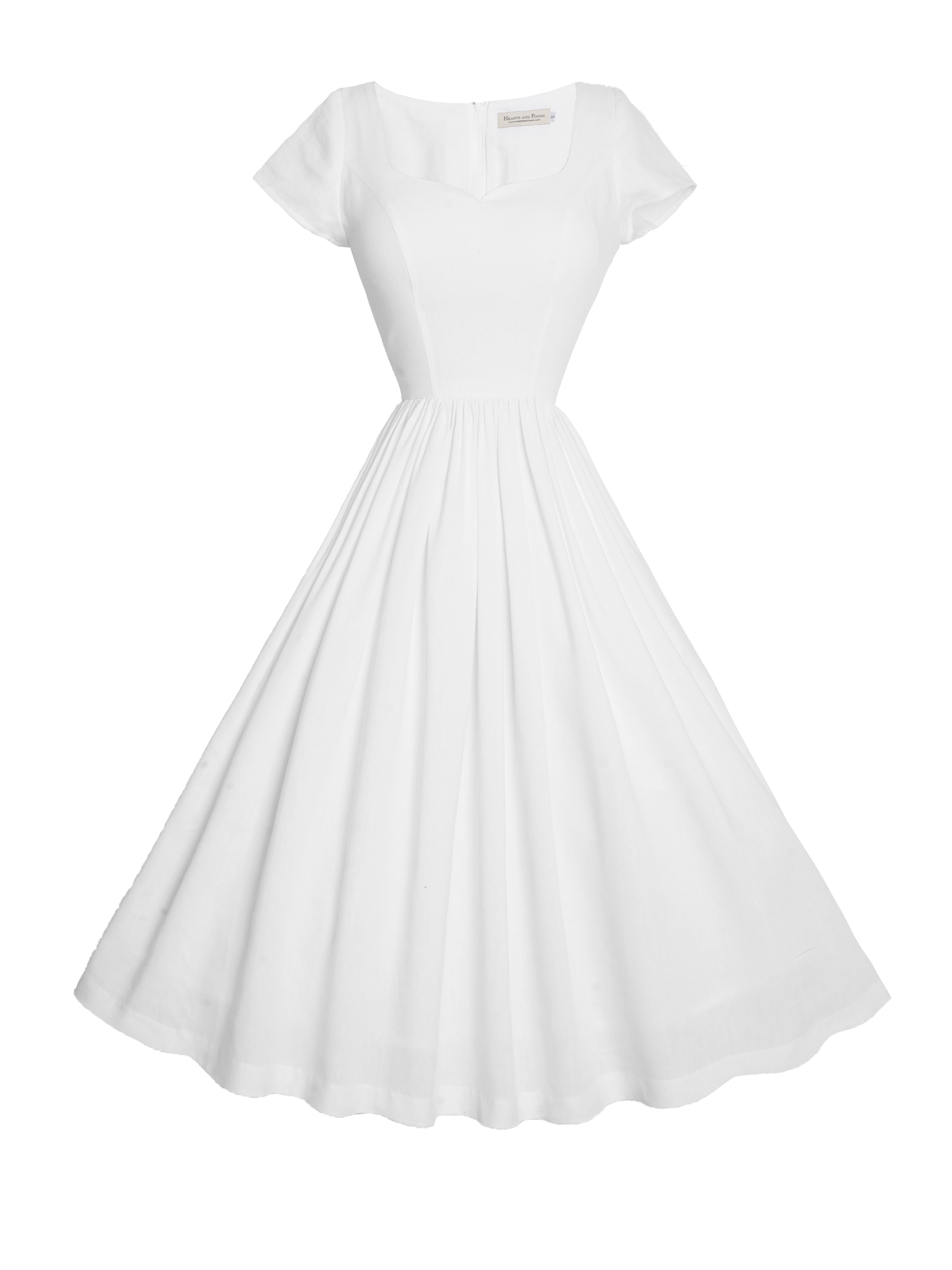 This beauty will take you on a trip down memory lane... She has a low-cut sweetheart neckline that frames your chest nicely. We've meticulously crafted the bodice with a nipped-in waist creating a flattering silhouette that flatters your curves. Perfect for garden parties, making you feel graceful and pretty. Hidden pockets keep your essentials close at hand (phone, lipstick, maybe a stolen glance?)