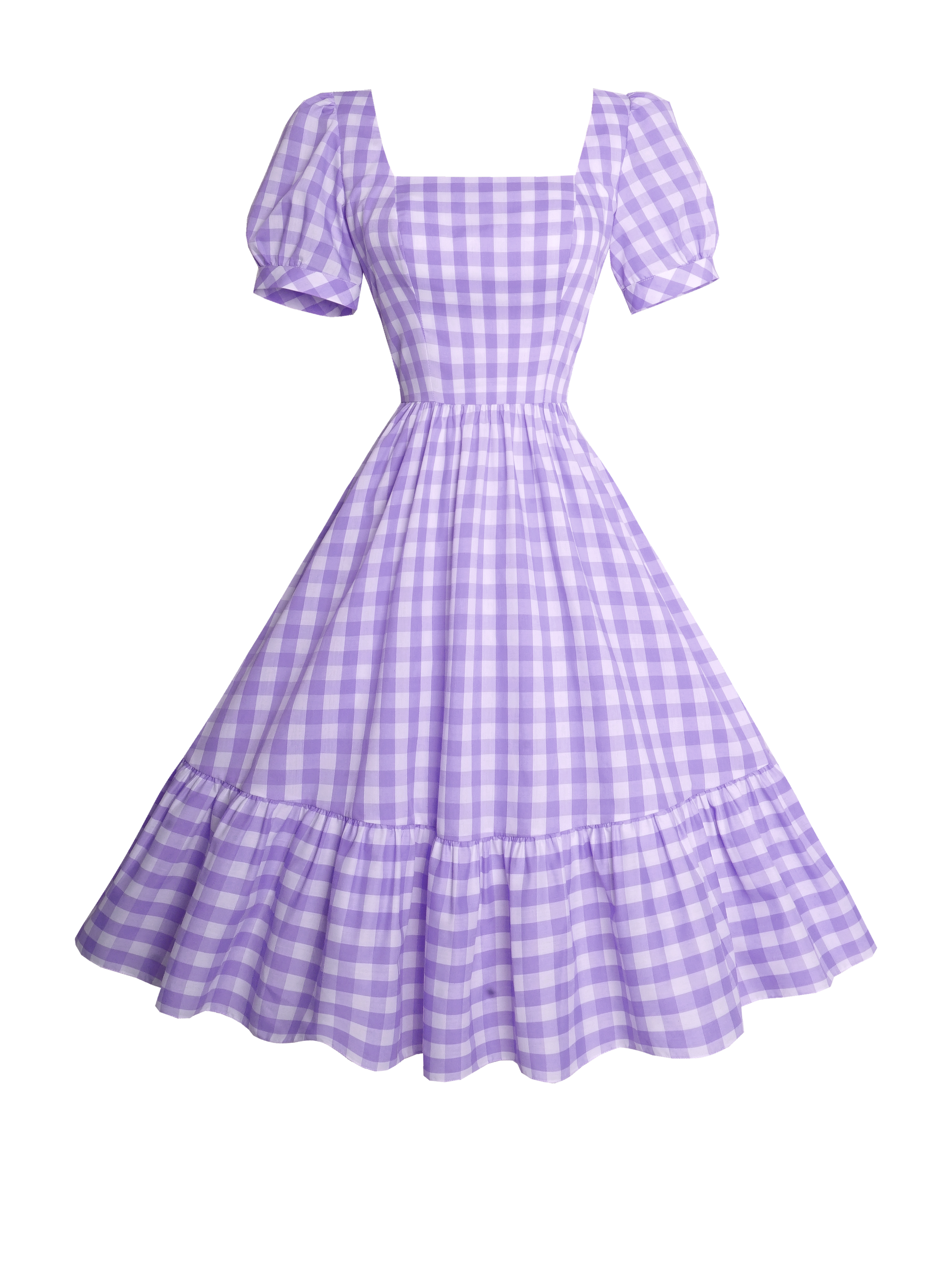 MTO - Isadora Dress Lavender Purple Gingham - Large Checks