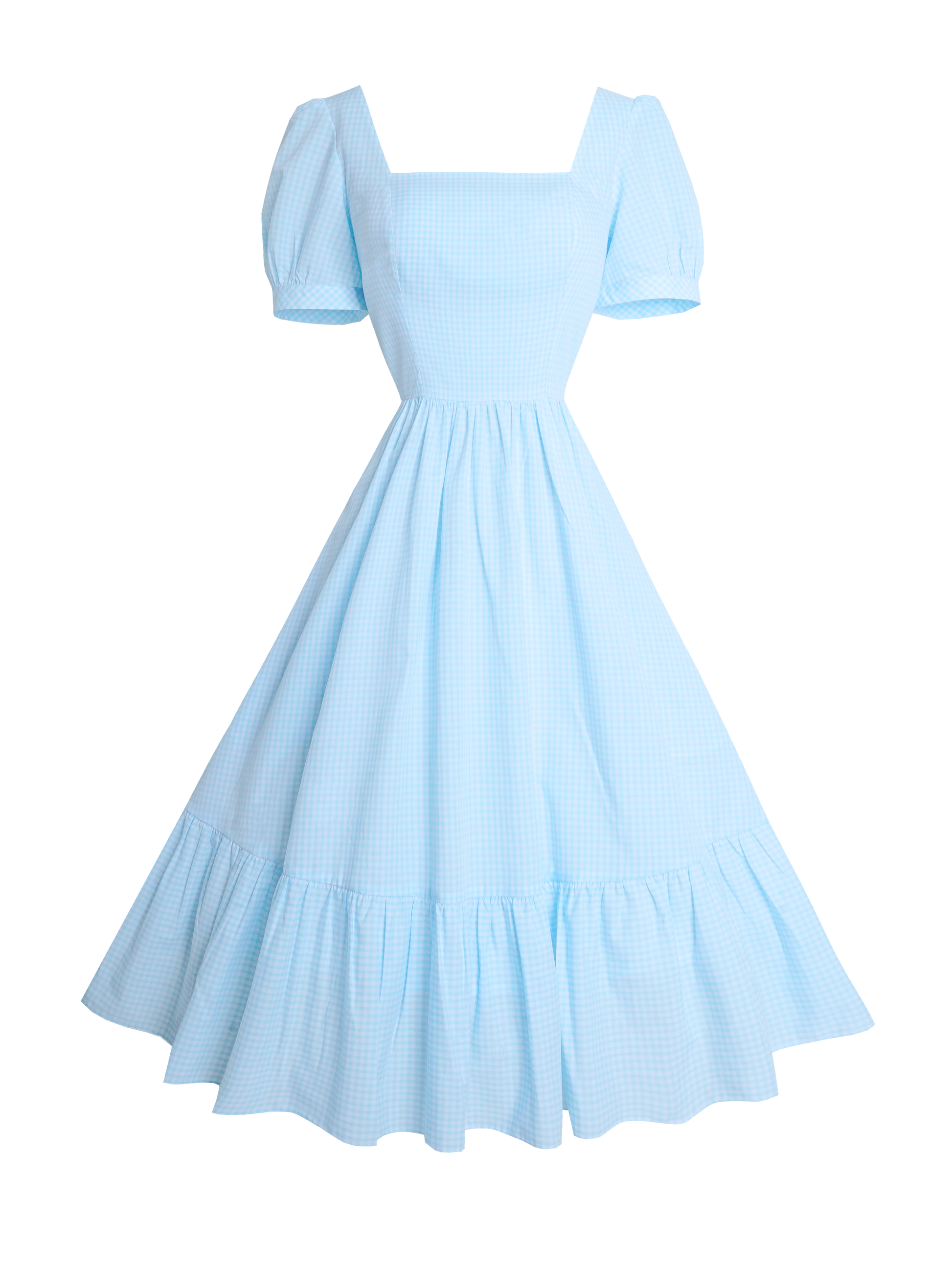 MTO - Isadora Dress Light Blue Gingham - Small Checks