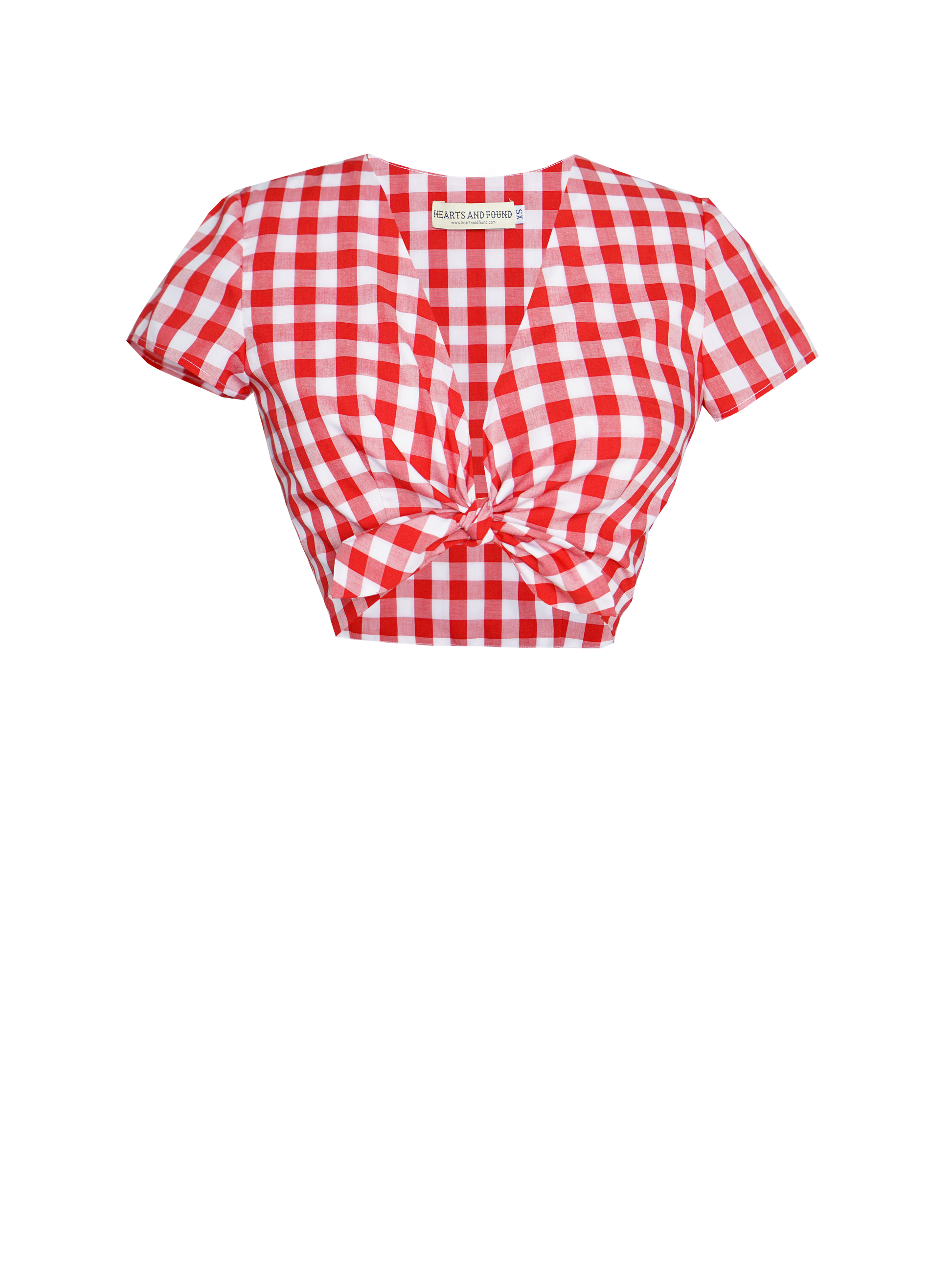 This flirty tie-front top is perfect for picnics, beach days, and all your warm-weather adventures. It pairs perfectly with high-waisted denim shorts or a flowy circle skirt.