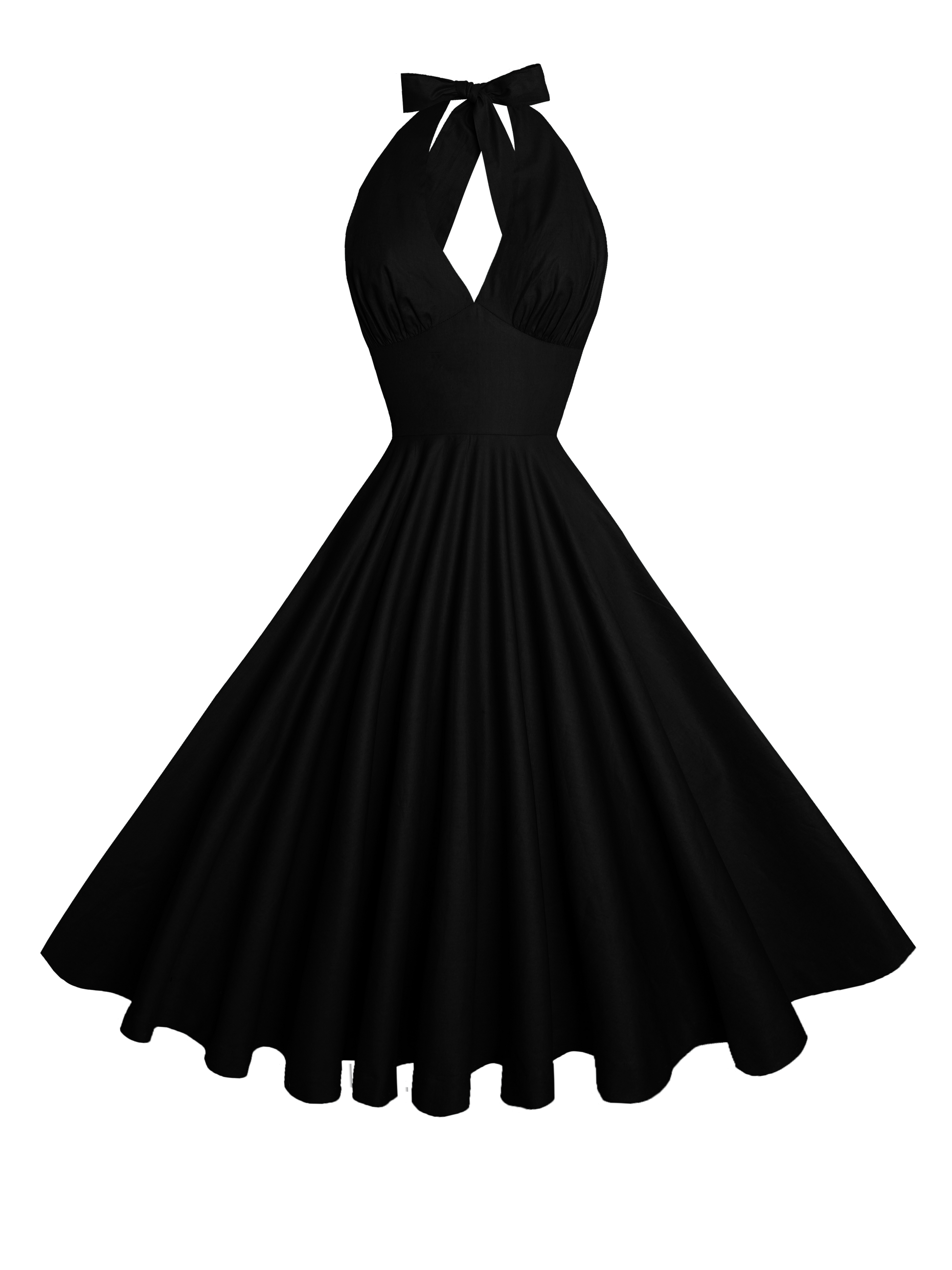 This stunning beauty of a dress is a wonderful reproduction of a 1950s dress. It features a flattering halter neckline and is designed to hug your natural curves.