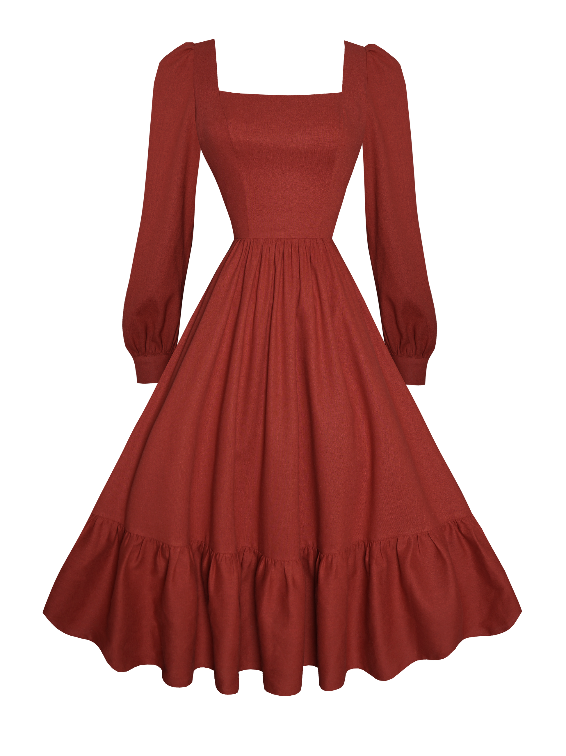 Inspired by the romantic era, this dress is framed with a delicate square neckline and long puffed sleeves. She is comfortable to wear everyday and crafted in a timeless elegant style.