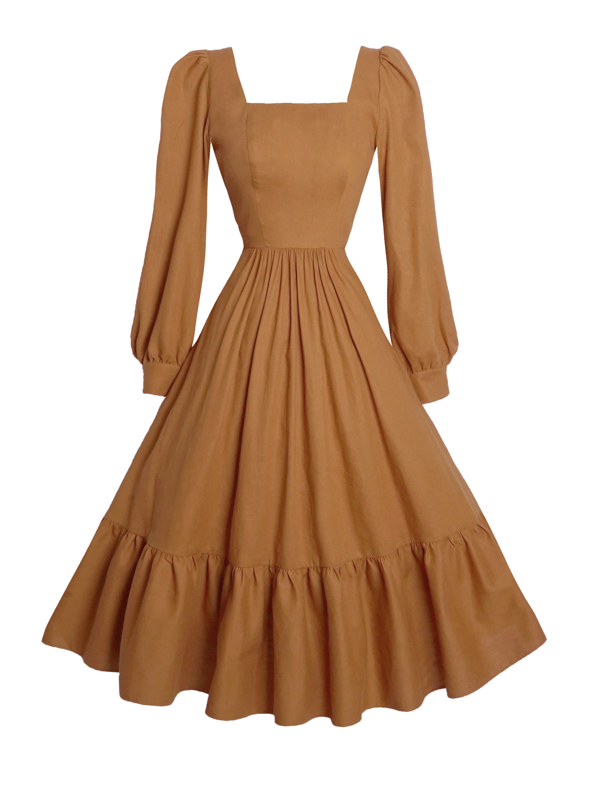 Inspired by the romantic era, this dress is framed with a delicate square neckline and long puffed sleeves. She is comfortable to wear everyday and crafted in a timeless elegant style.