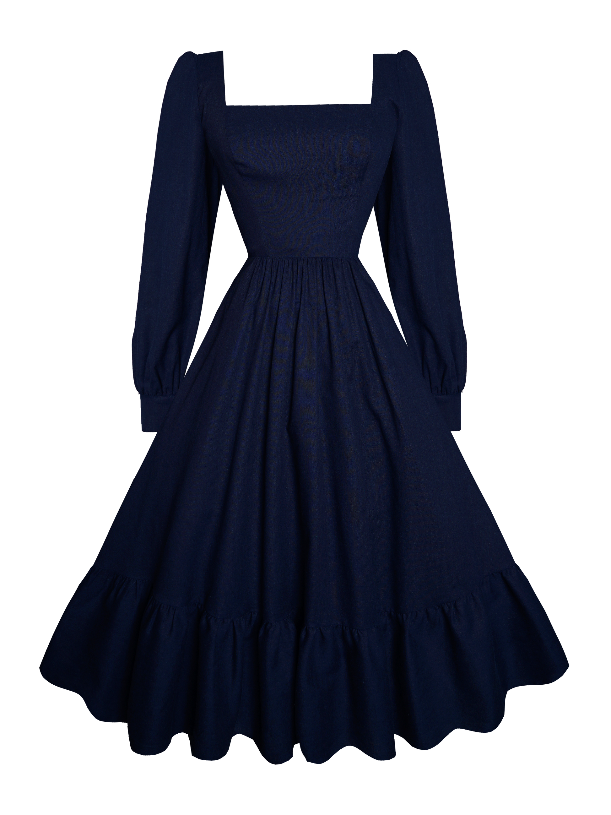 Inspired by the romantic era, this dress is framed with a delicate square neckline and long puffed sleeves. She is comfortable to wear everyday and crafted in a timeless elegant style.