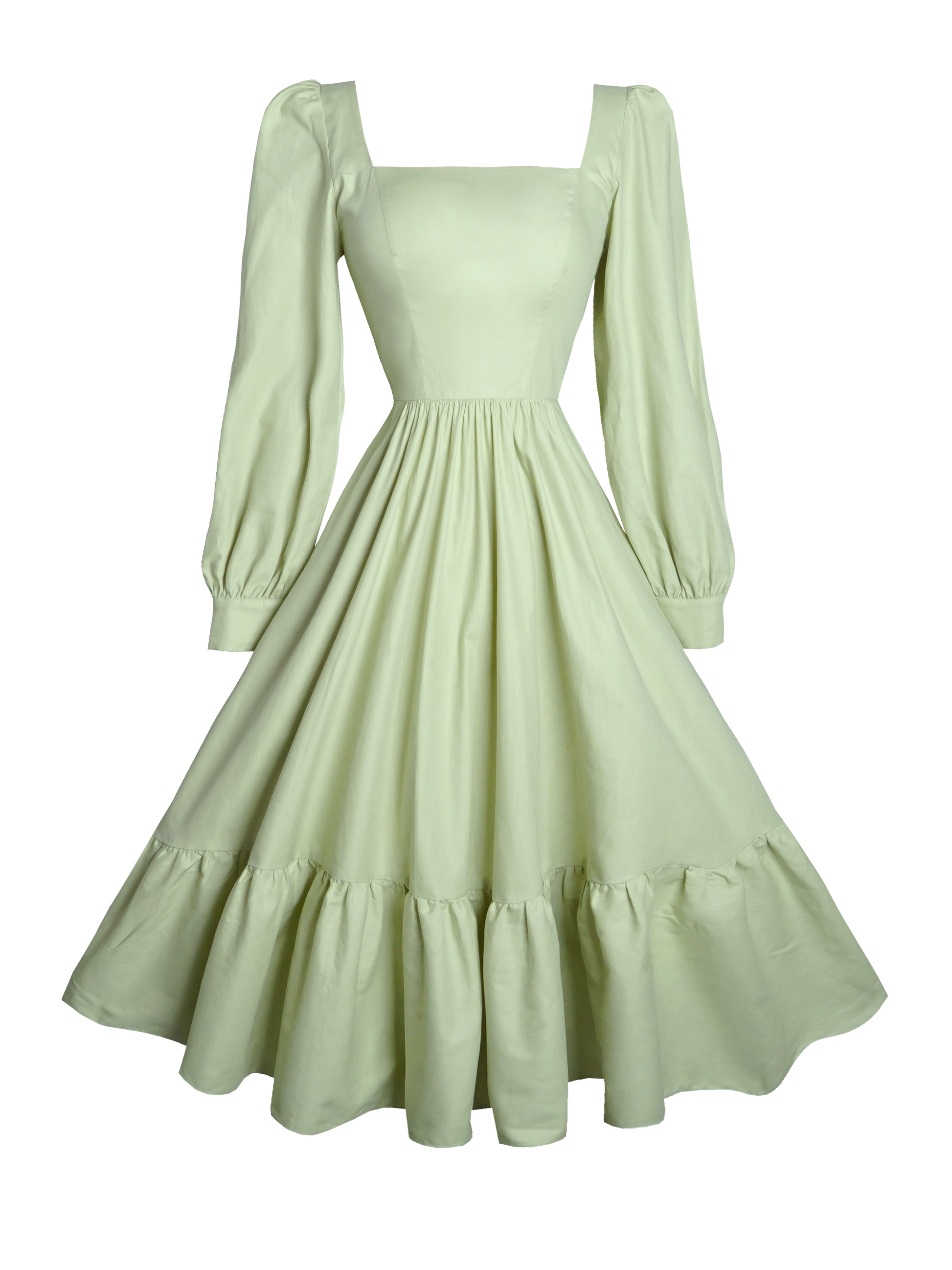 Inspired by the romantic era, this dress is framed with a delicate square neckline and long puffed sleeves. She is comfortable to wear everyday and crafted in a timeless elegant style.
