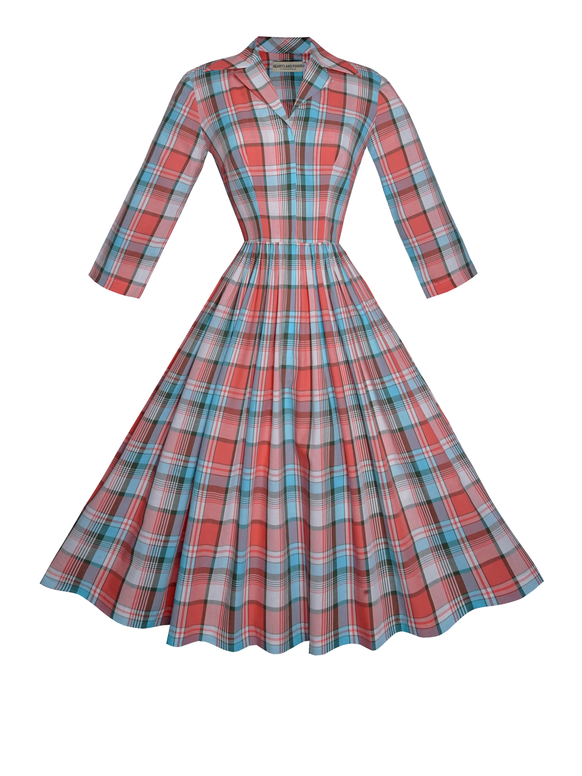 The Natalie Dress is a 1940s style shirtdress that could be worn during all seasons. She is forever feminine and flattering in this classic wide lapel collar and 3/4 sleeves. Perfect for the office, you'll feel stylish all day. Fitted bodice with a nipped in waist and a full gathered skirt.