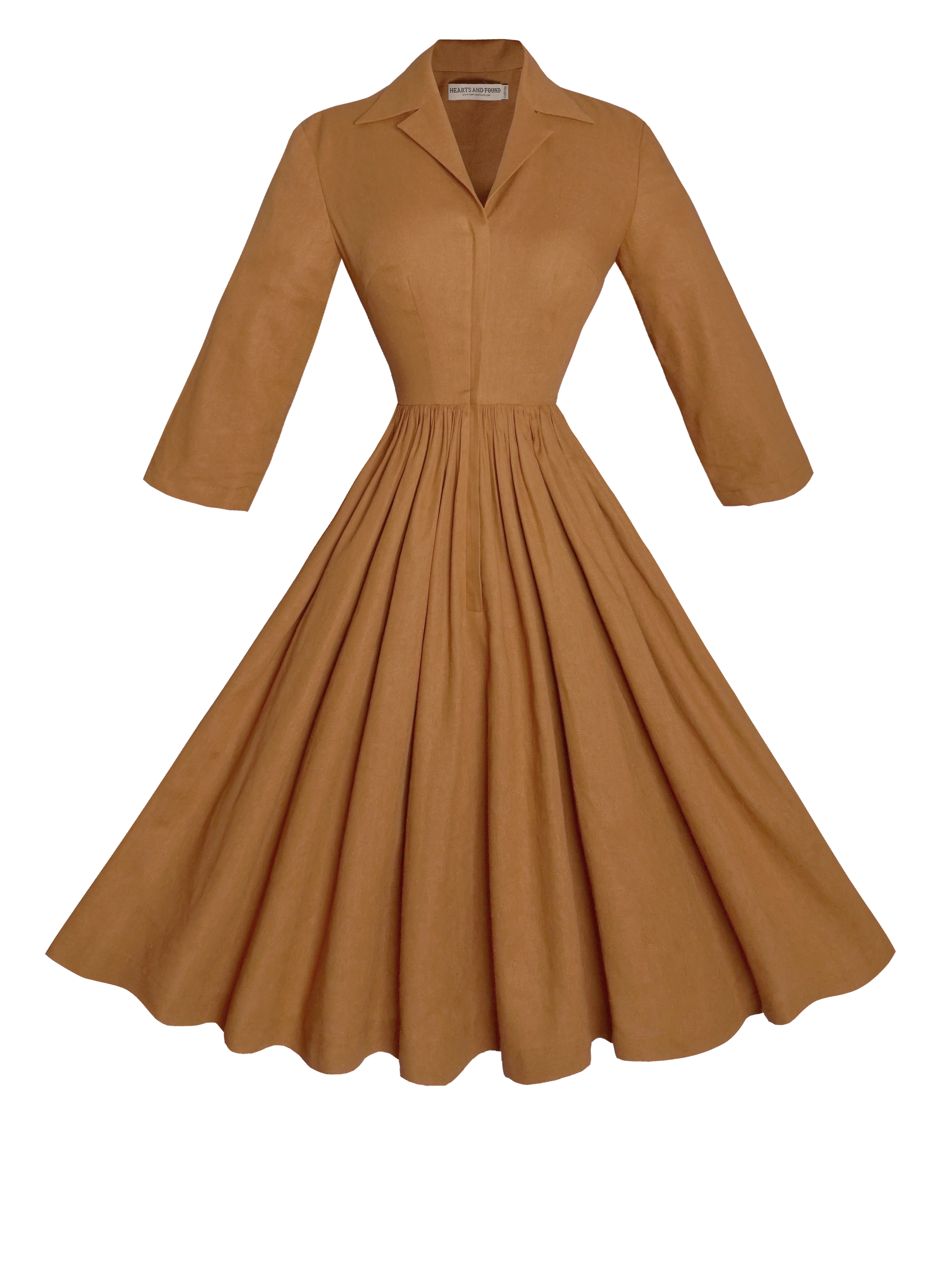 The Natalie Dress is a 1940s style shirtdress that could be worn during all seasons. She is forever feminine and flattering in this classic wide lapel collar and 3/4 sleeves. Perfect for the office, you'll feel stylish all day. Fitted bodice with a nipped in waist and a full gathered skirt.