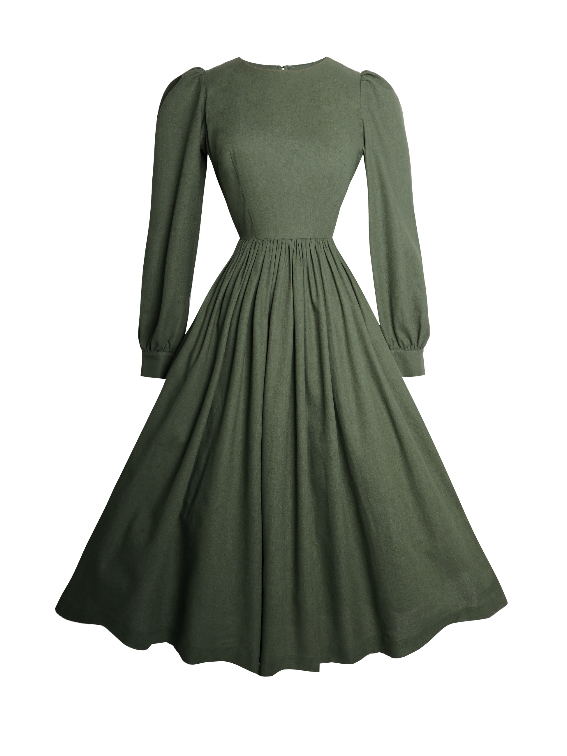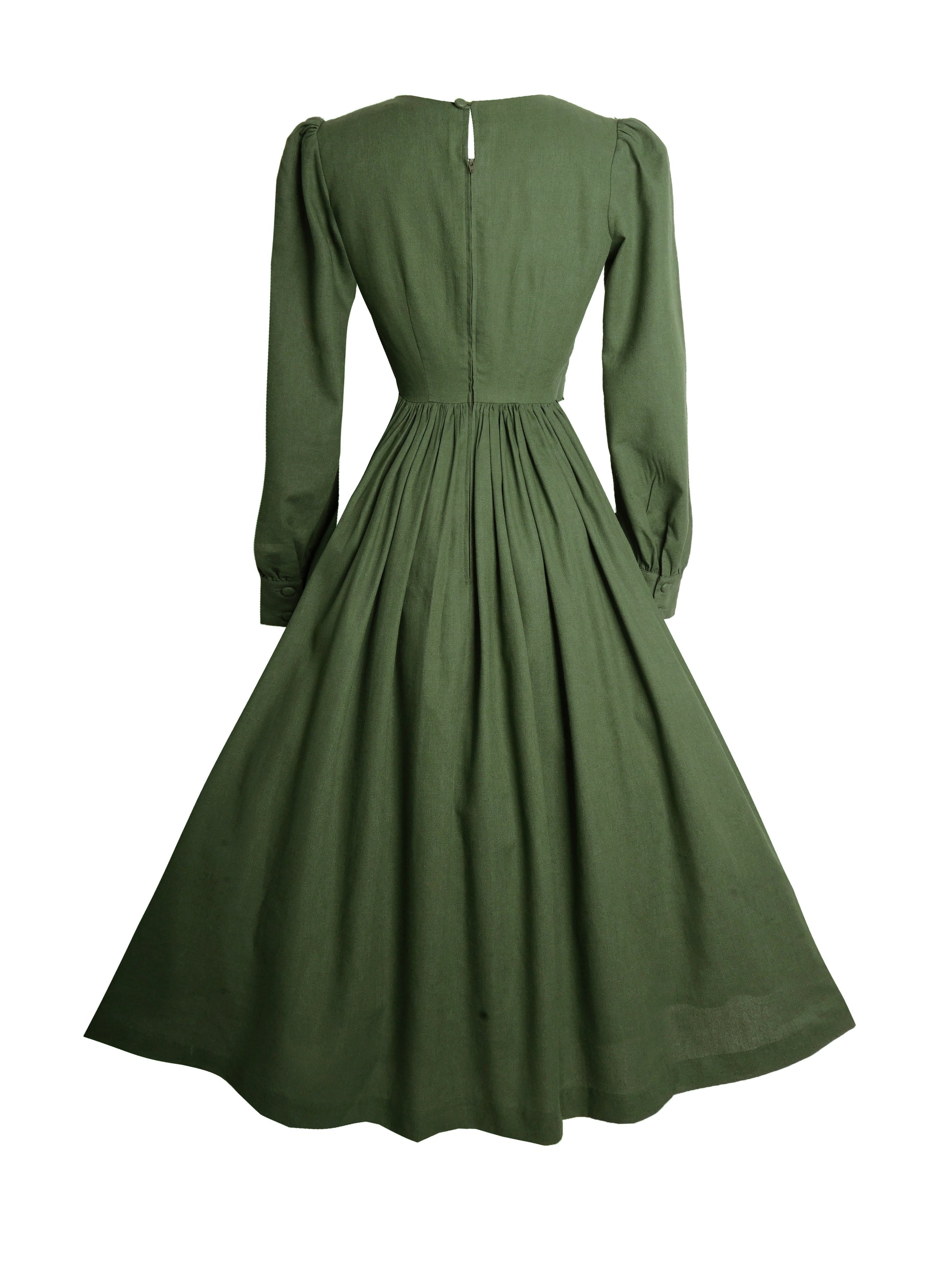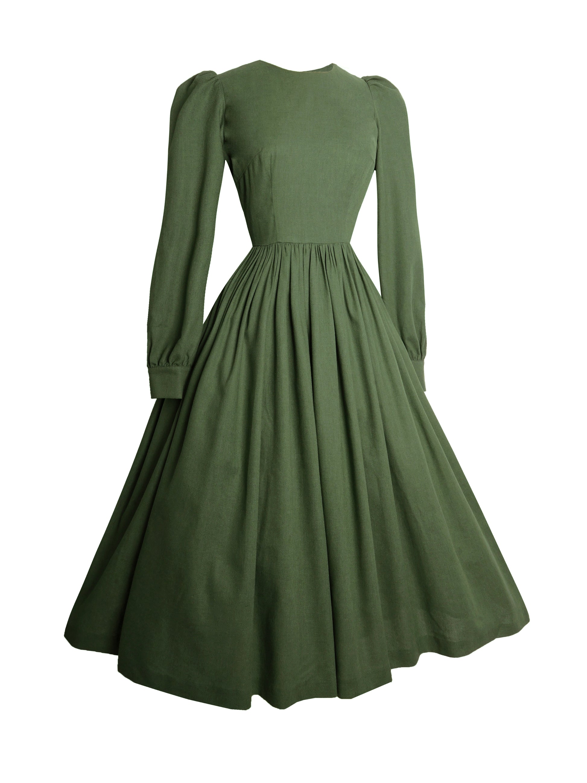 RTS - Agnes Dress in Hunters Green Linen - Midi Length