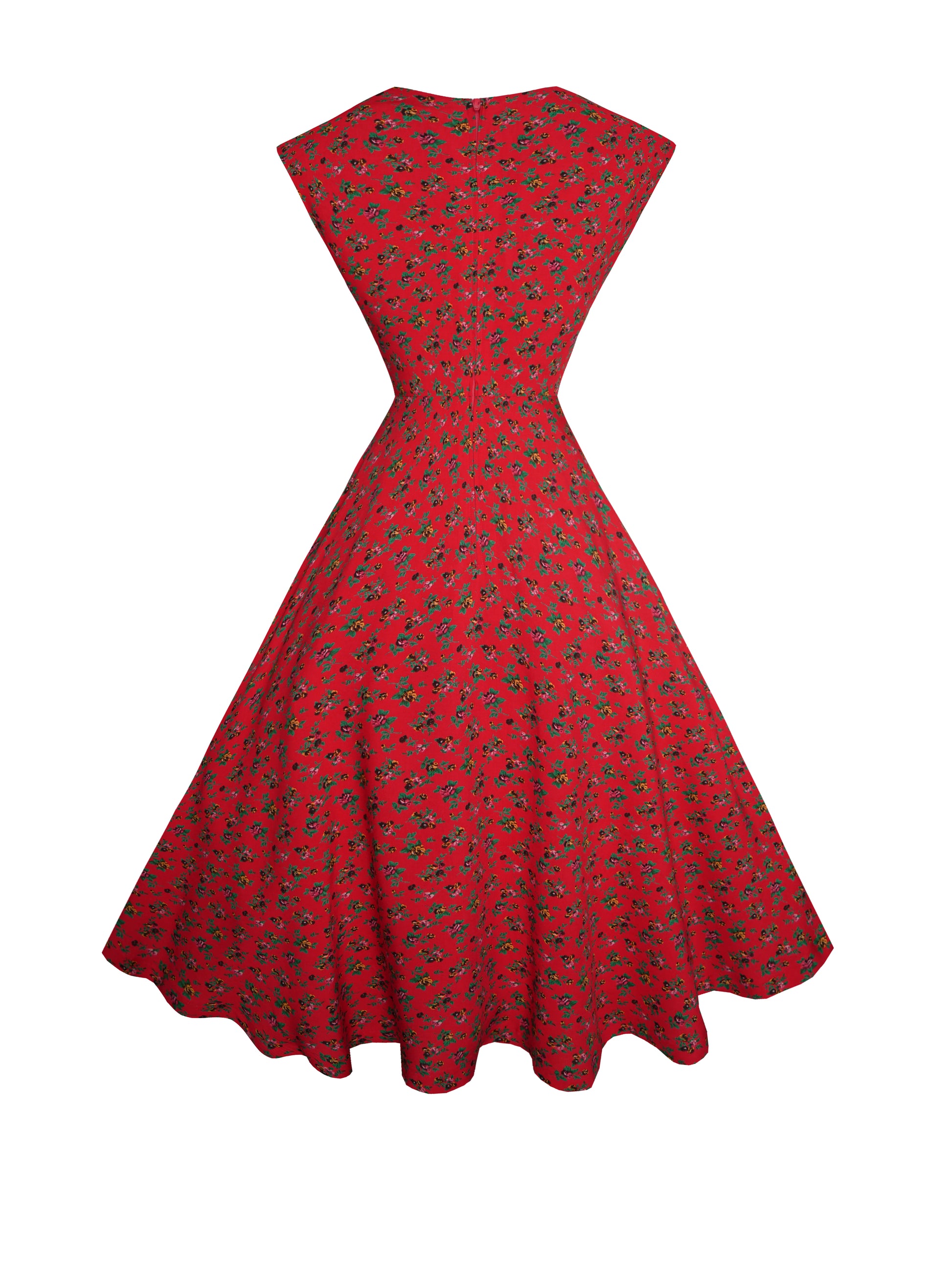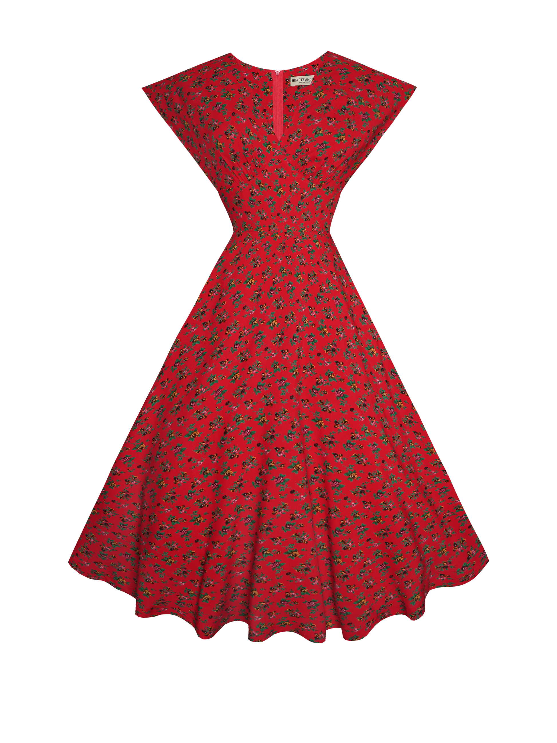 RTS - S - Kennedy Dress "Rustic Country Roses" Red
