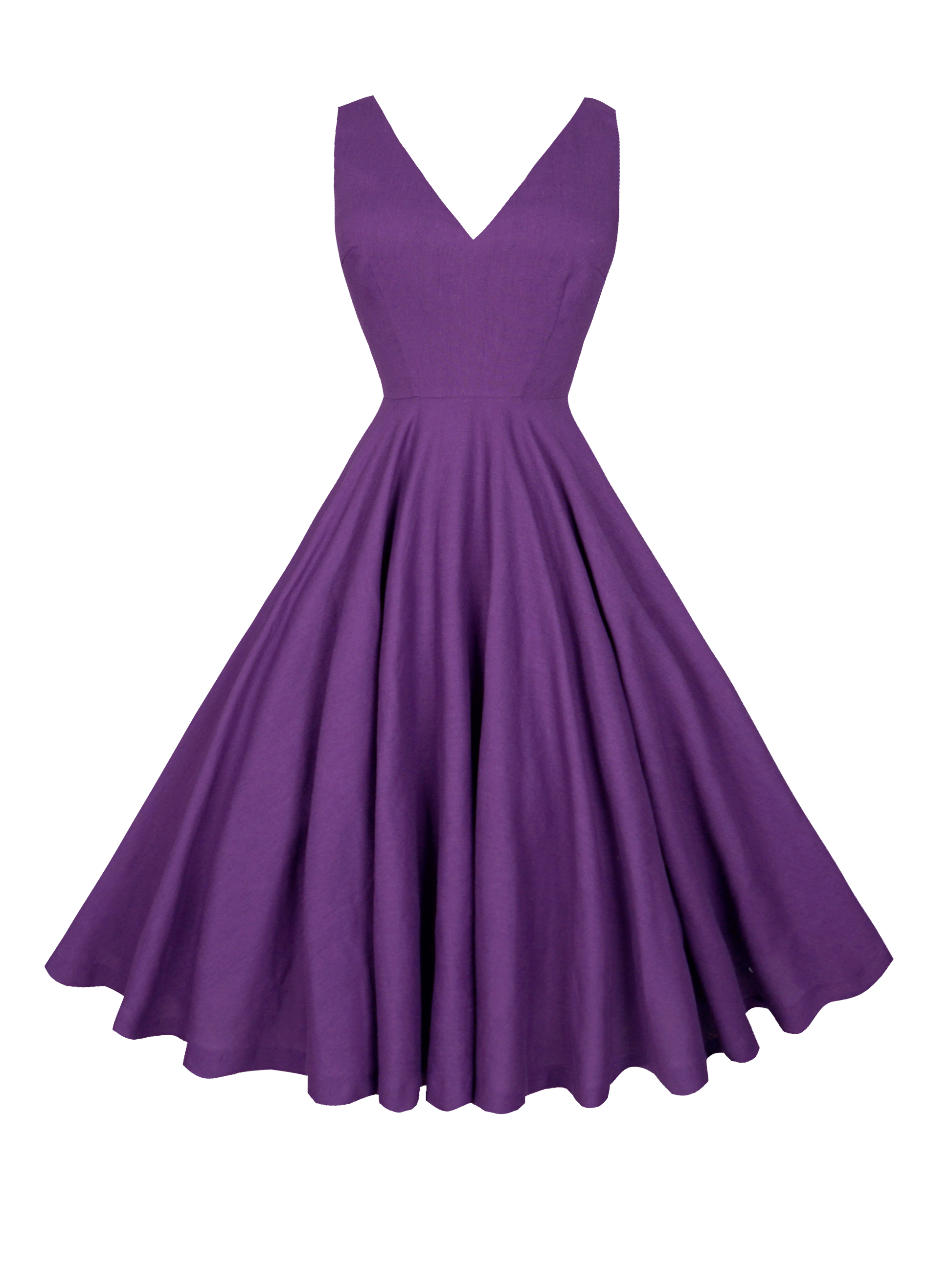 This classic 1950s inspired dress features a plunging V-neckline, with a fitted bodice that will create a flattering fit-and-flare silhouette, while the full circle skirt sways with every step. Hidden pockets keep your essentials close at hand (phone, lipstick, maybe a love letter?)