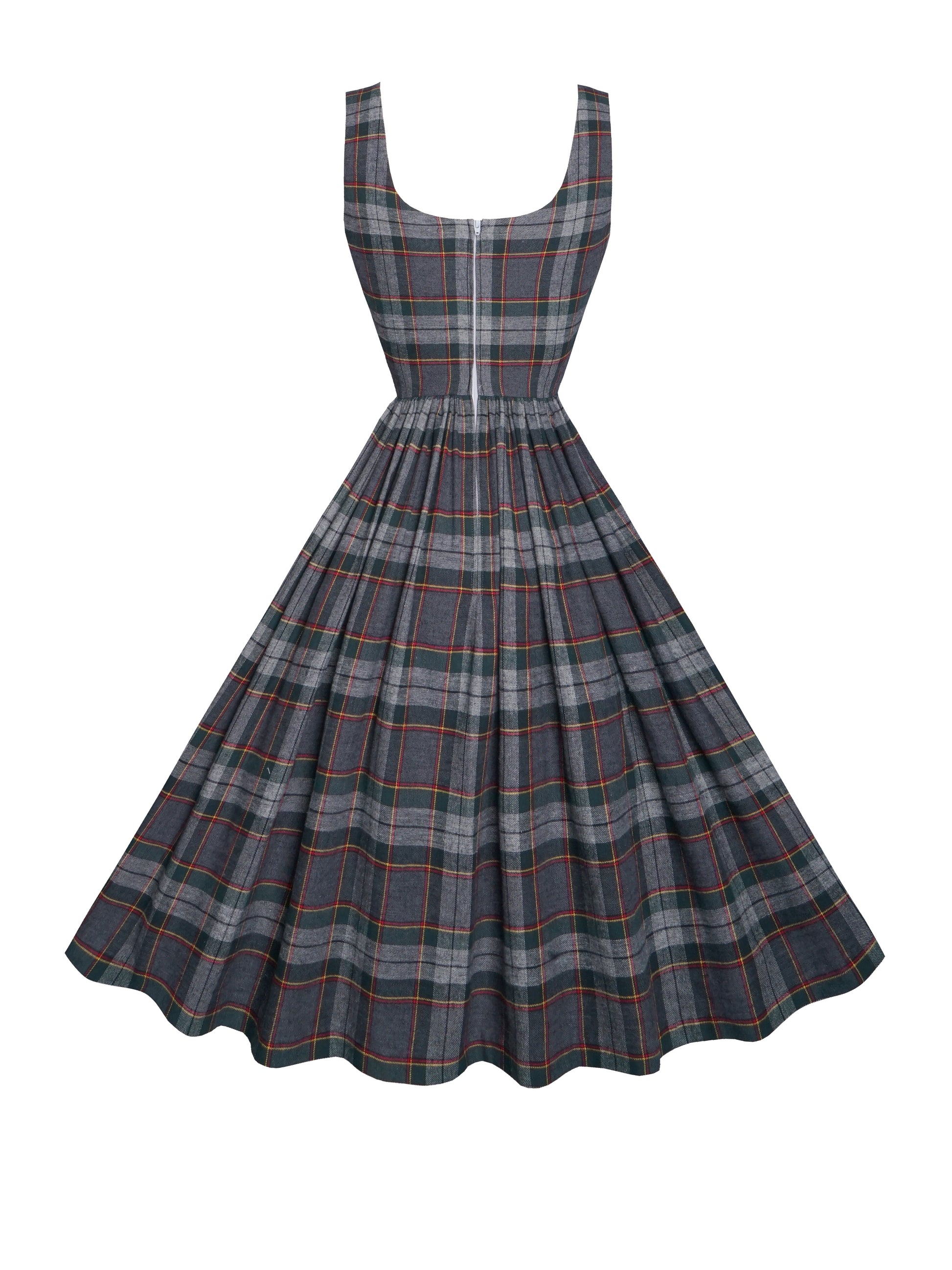 The dress itself features a beautifully flattering scoop neckline, highlighting your collarbone and creating a classic retro silhouette. But the Emily Dress isn't just about aesthetics, it's about comfort and practicality. The soft, fully lined cotton construction ensures all-day comfort, while the back zipper closure and roomy side pockets add a touch of modern functionality (phone, lipstick, maybe a hidden agenda?)