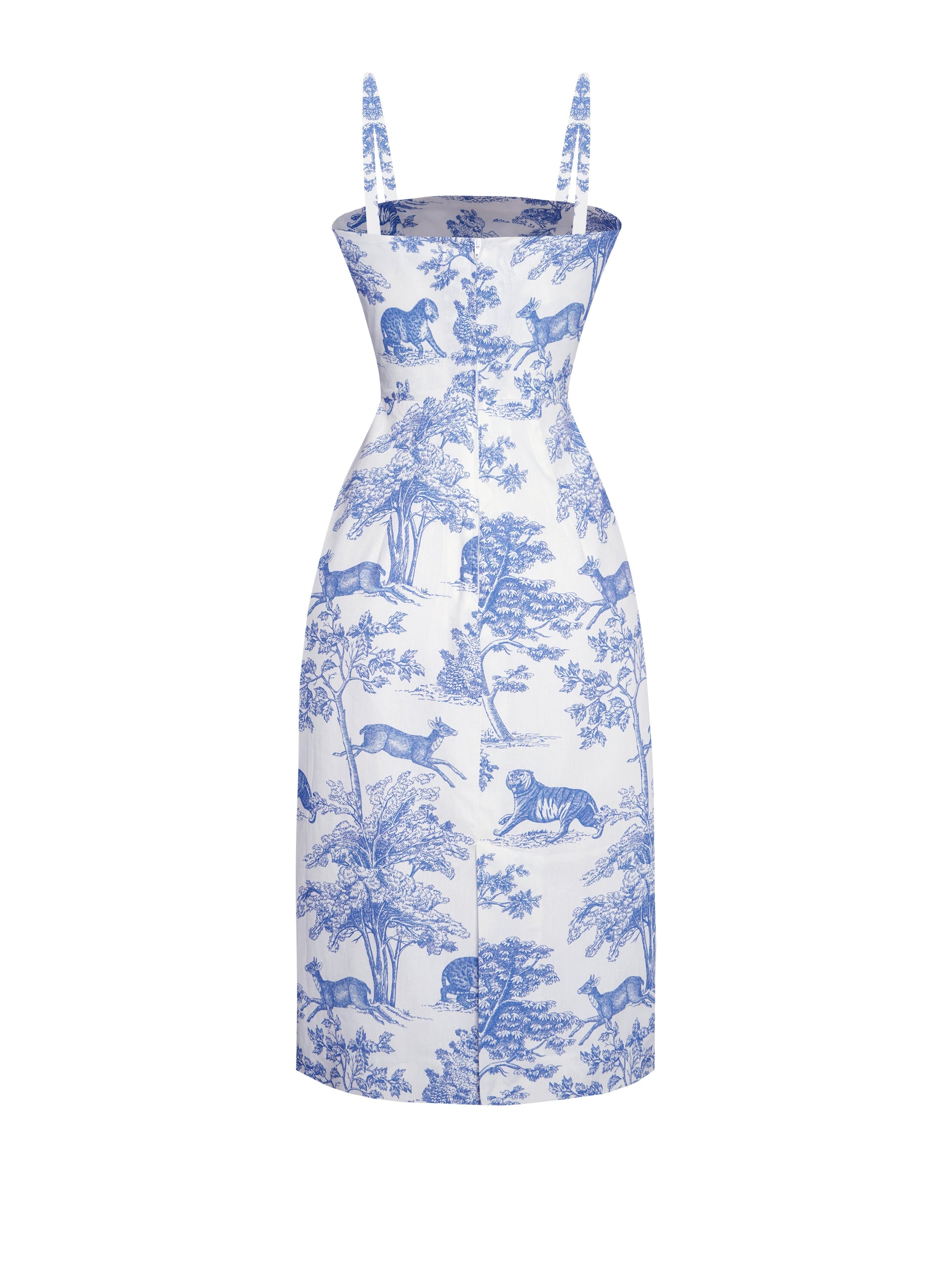 This classic flattering 1950s inspired dress features a straight neckline and thin spaghetti straps that is fully adjustable. The fitted bodice with a nipped-in waist creates a classic hourglass silhouette, and a formfitting pencil skirt. Perfect for warm days or casual evenings