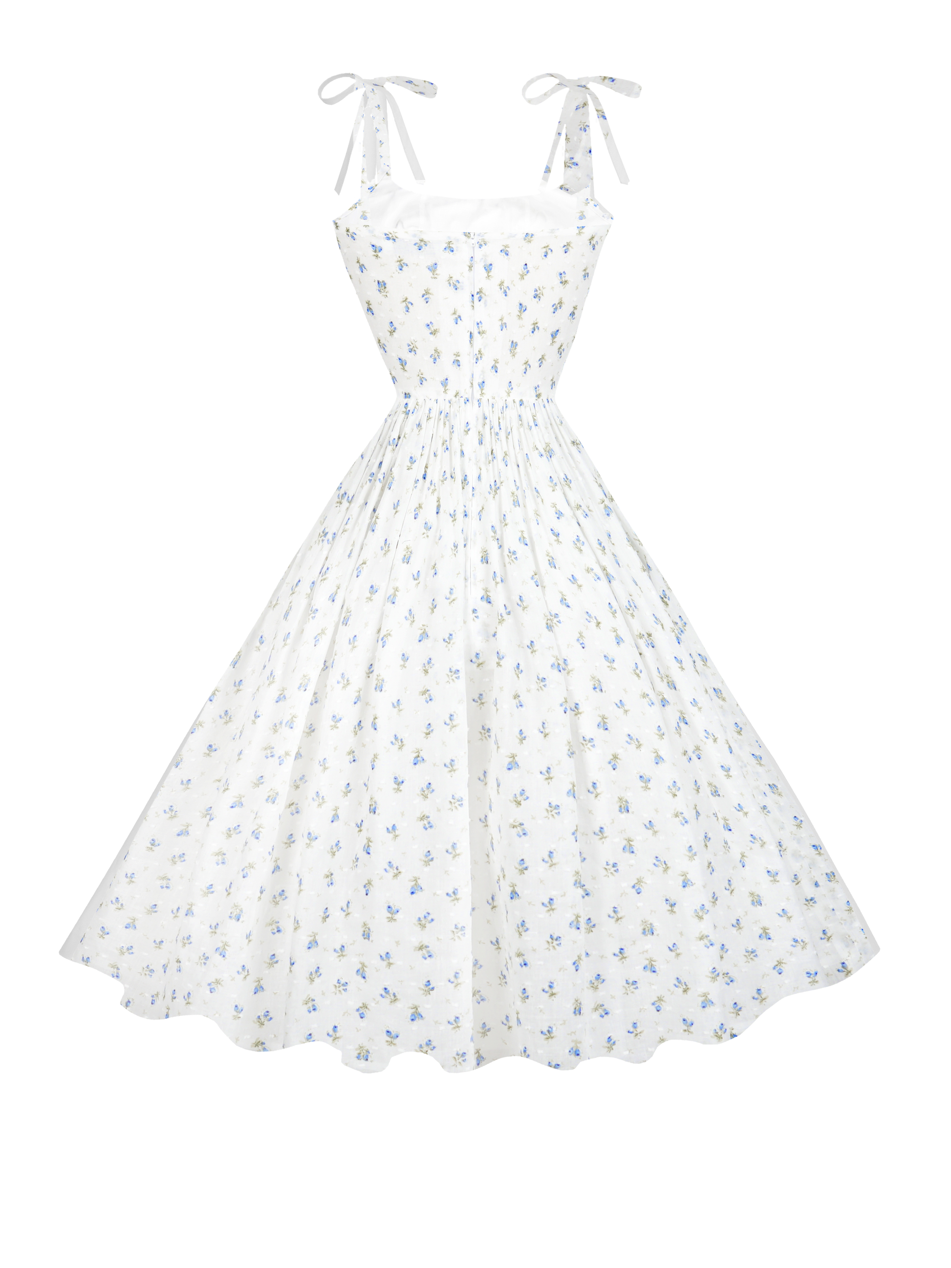 - Delicate wildflowers scattered across a white Dotted Swiss in sheer cotton fabric. Perfect for a storybook-inspired cottagecore dress.