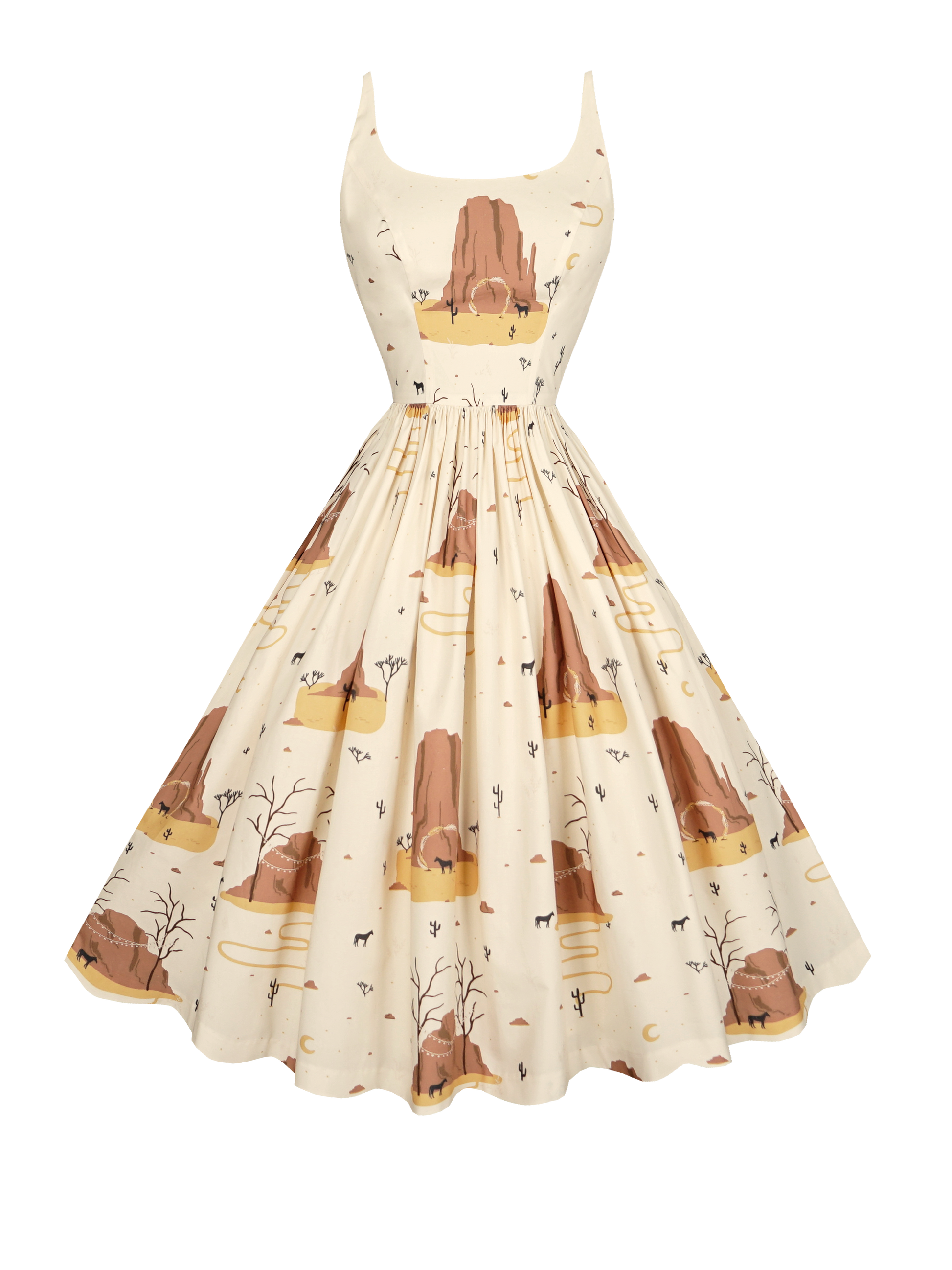 The Penelope Dress isn't just a dress, it's a confidence booster in a vintage package. The neckline features a slight scoop to it leading to a lovely nipped in waist. Such a flattering classic dress with a daringly low plunging back and thin adjustable spaghetti straps that will make you feel confident and comfortable all day long.