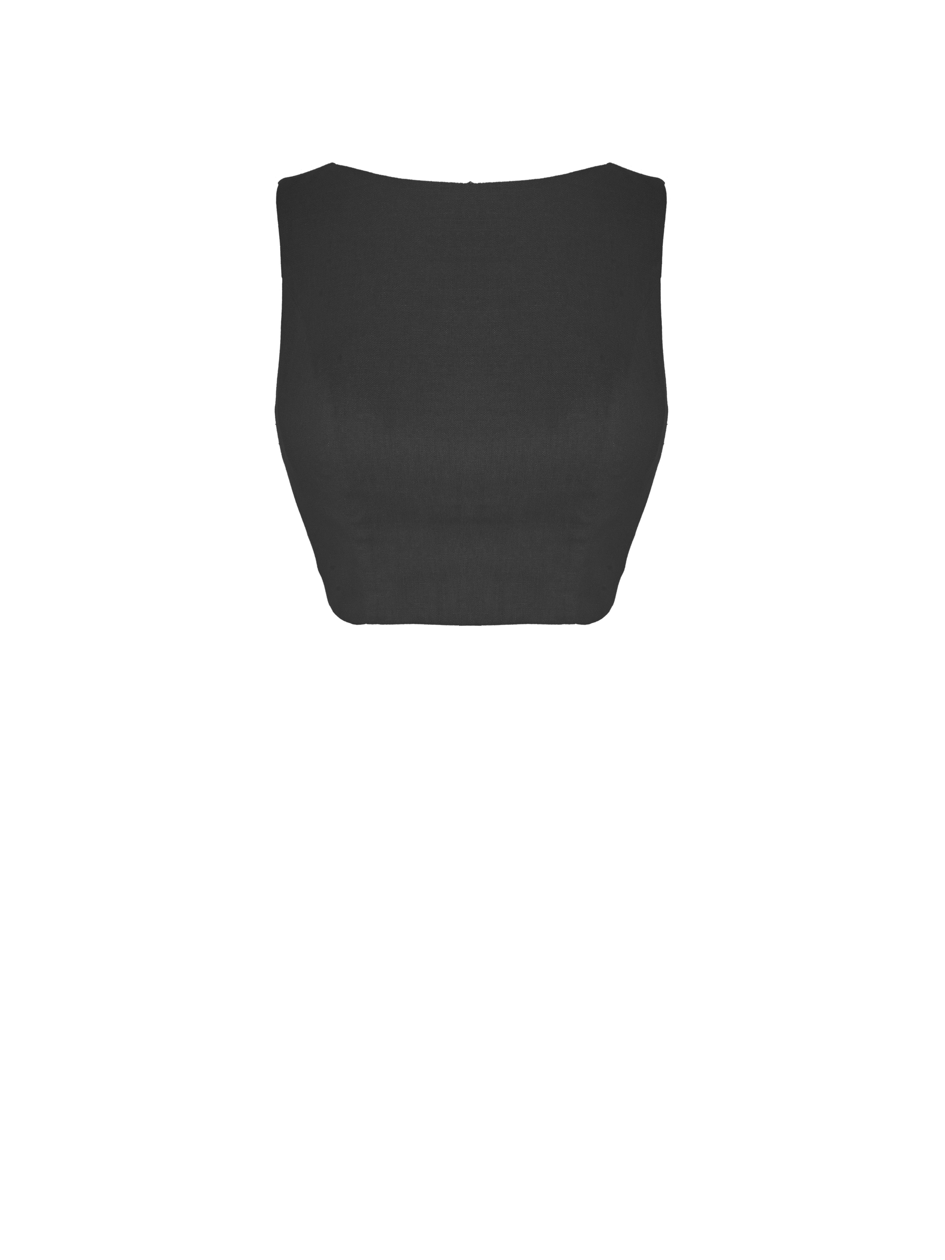 The Georgia Top features a cropped midriff cut with a boat neckline and back zipper closure.