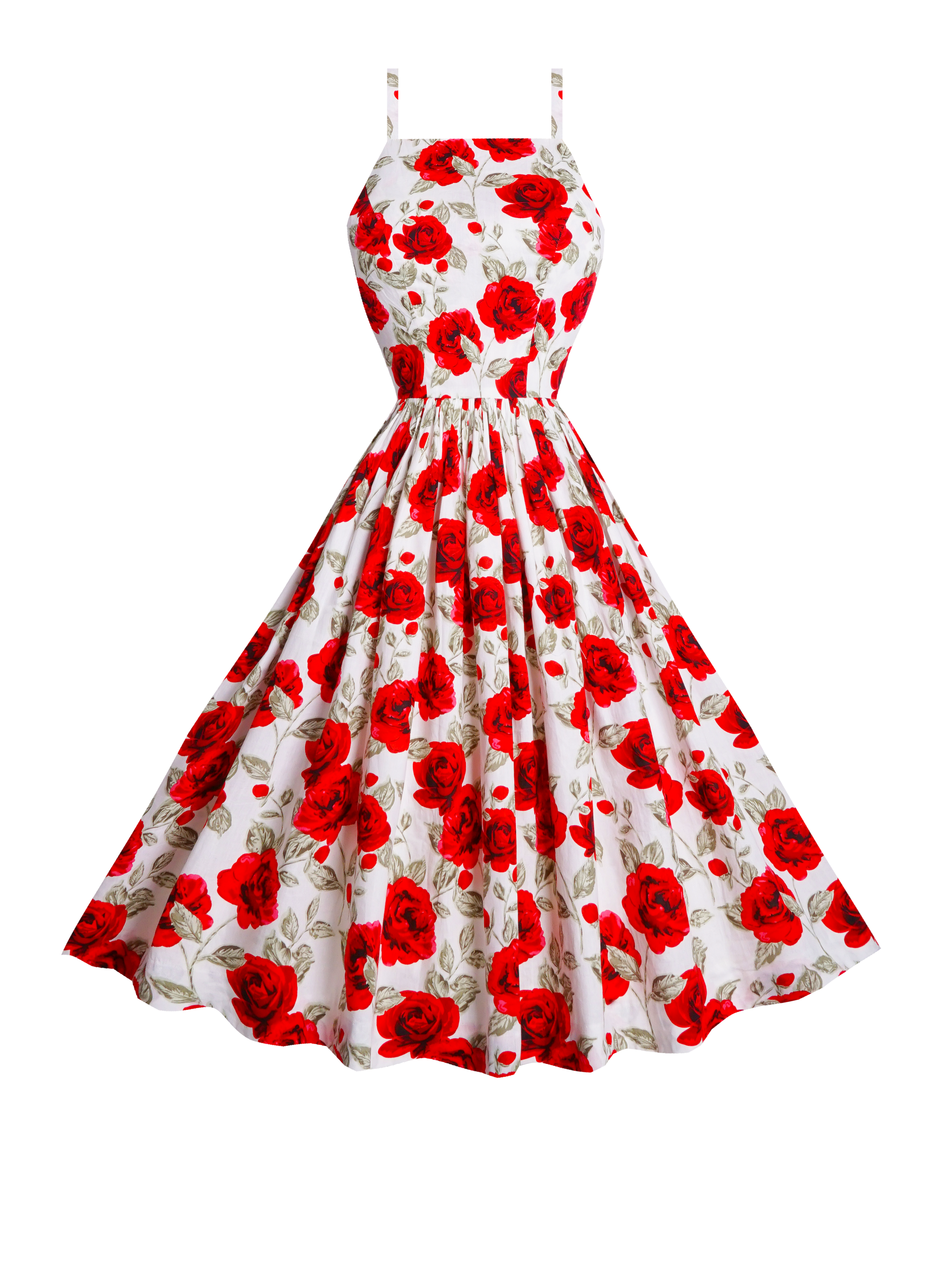 The Rosalie Dress is a versatile piece that belongs in every woman's wardrobe. This fifties inspired dress features a shoulder flattering high square neckline with thin adjustable straps.